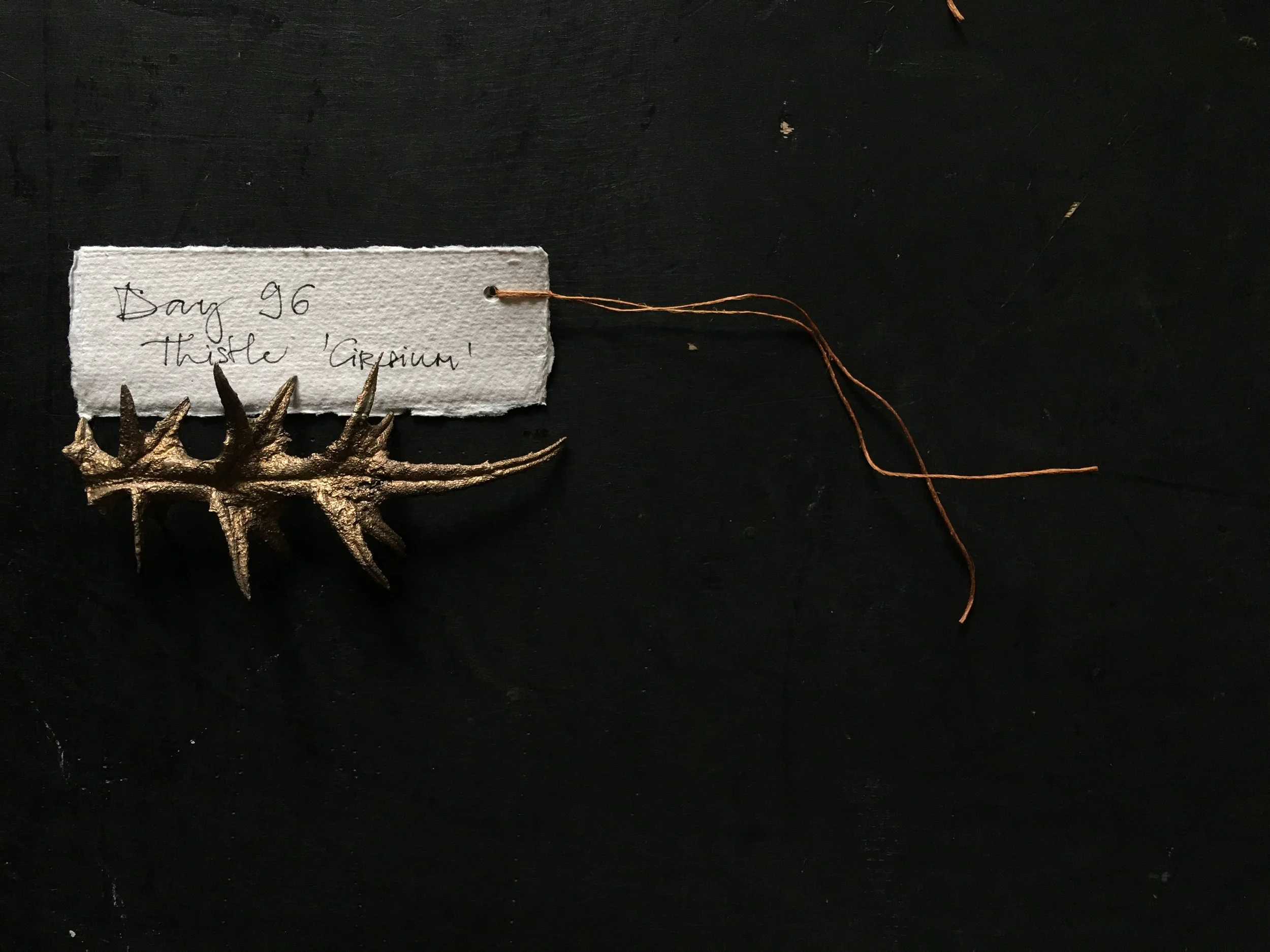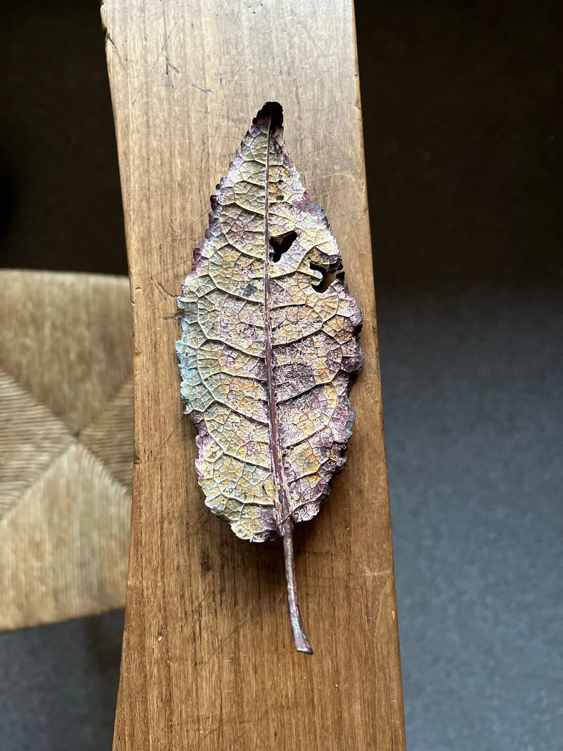 A unique casting in solid bronze of a collection of 38 tea leaves that were collected at Windy Hollow Farm in Perthshire, Scotland in the summer of 2019.
