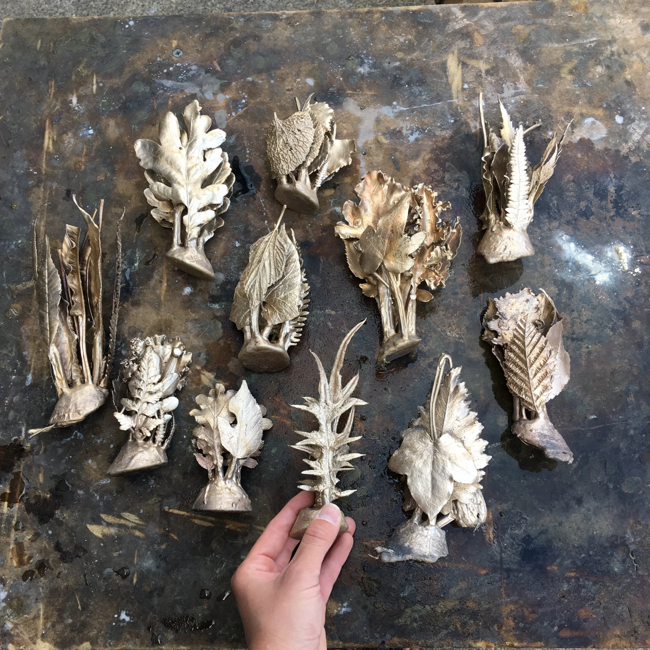 Each bronze leaf is an entirely unique life casting of nature made by Ashleaf, the small London-based art practice Hanna co-founded and was actively and collaboratively working in at the time these sculptures were created.