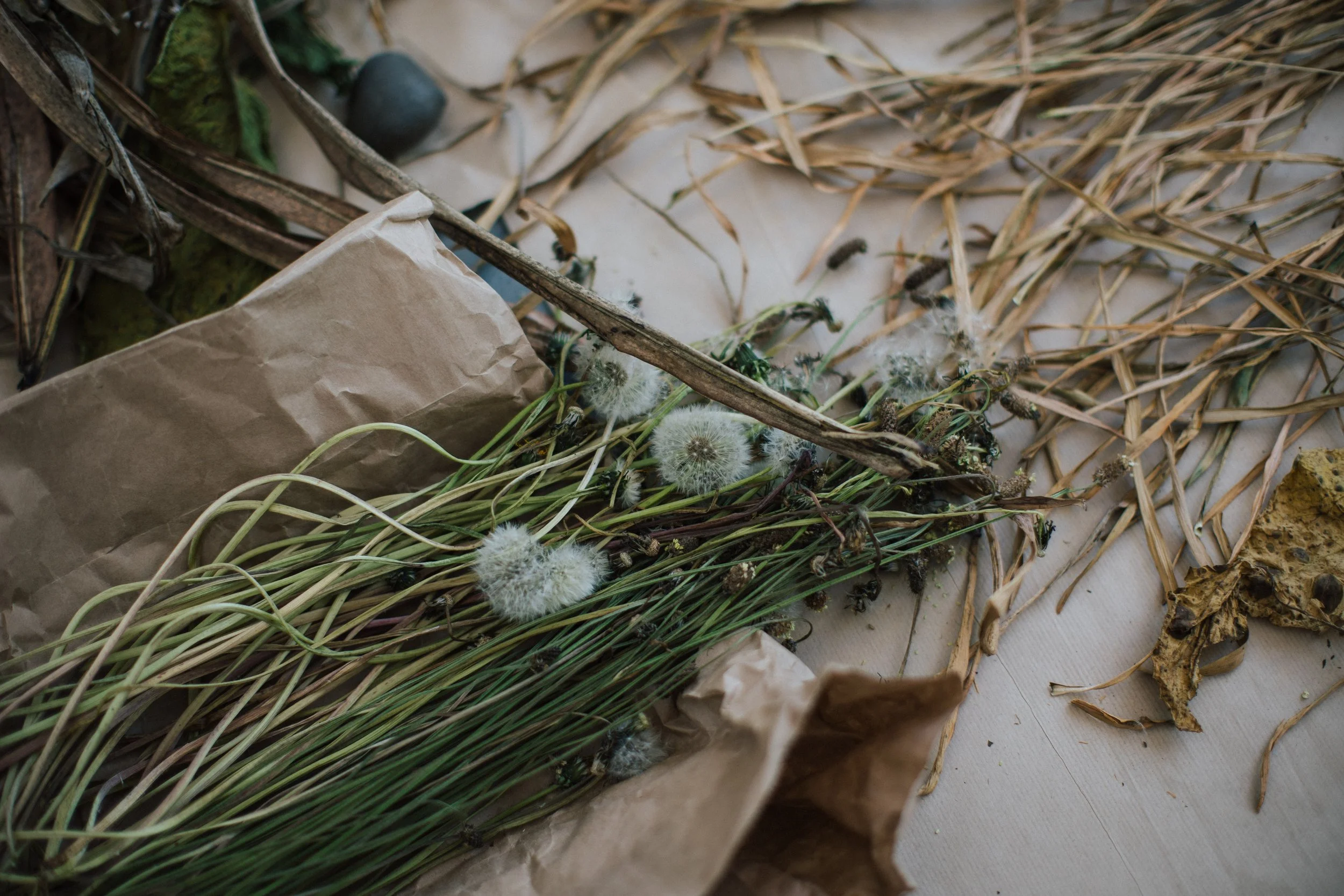Many of the plants we forage in other seasons, especially in autumn remain available throughout the winter months. By the time next winter arrives to your door, you will know what grows in the landscape around you and I trust, you will be equipped to identify and continue gathering fibres on your daily walks if you choose to. However, it is said that ‘every mile in winter is two’ which means that the darkest season in the Northern Hemisphere is not the most inviting time of the year for harvest. I would invite you to gather more during the more abundant growing seasons of the year and preserve some of your harvest for the darker months of the year to work with.