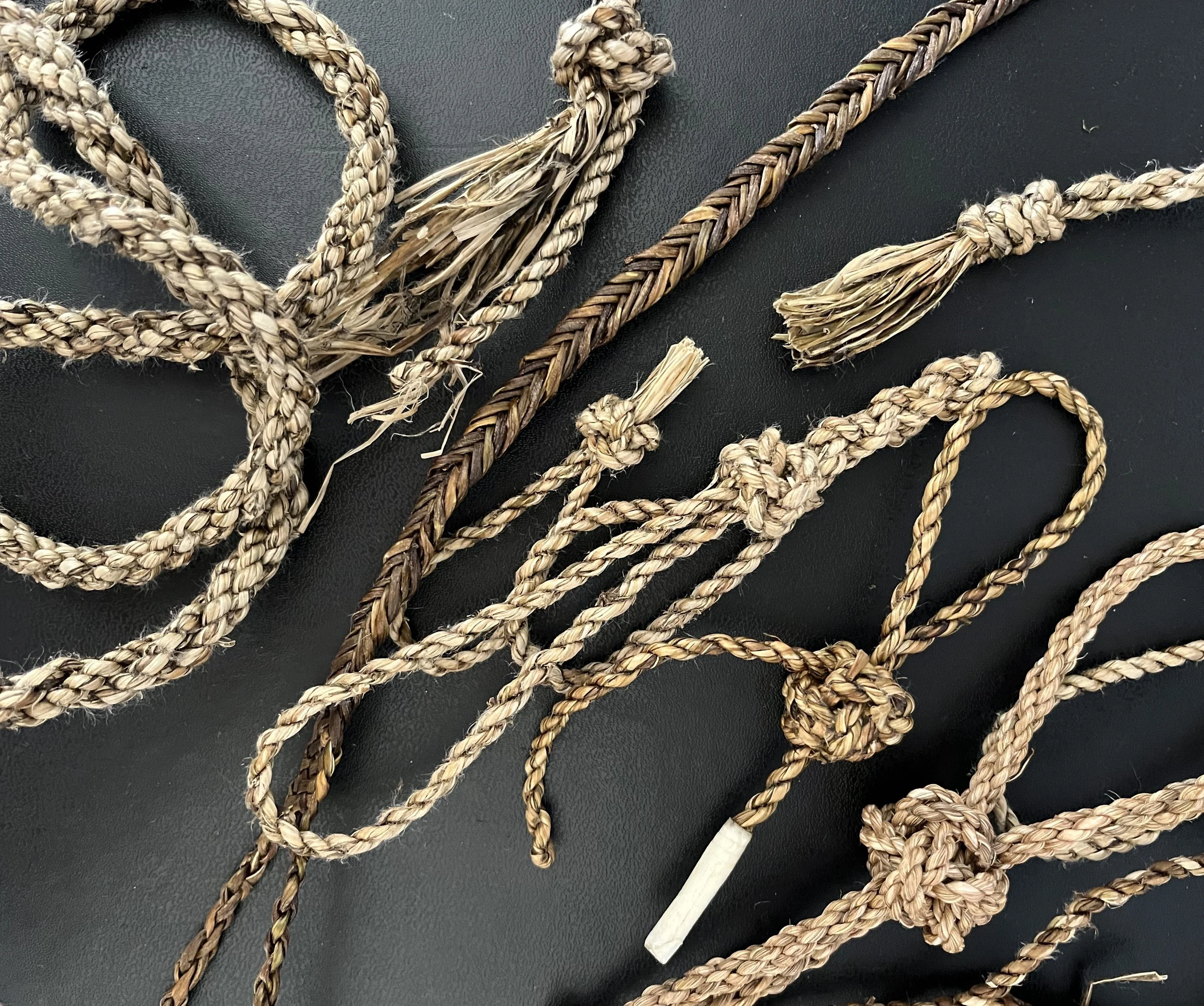 Taking as a point of departure an idea I first encountered whilst reading that prompted me to embark on a journey dedicated to explore knotted ropes and their agency to convey meaning. What utterly captivated my imagination I first read about in an essay by Italo Calvino titled Say it with Knots (originally published in 1984). In it he describes an exhibition about knot making and his impressions of the artefacts there as a medium for communication. After a few years of dedicated study of ropemaking with foraged fibres and knot tying, in 2025 (over 40 years after Calvino wrote about this in his essay) I am now beginning a yearlong artistic research and development funded by Arts Council’s DYCP grant to reanimate this ancient tactile craft in order to become well-versed in the language of knots.